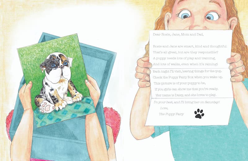 On her first visit, she’ll leave a special Puppy Fairy Box in your home. Then she’ll leave toys, bones, and other puppy essentials every night in the Puppy Fairy Box. Finally, on “Puppy Day”, The Puppy Fairy brings the puppy to their new family.