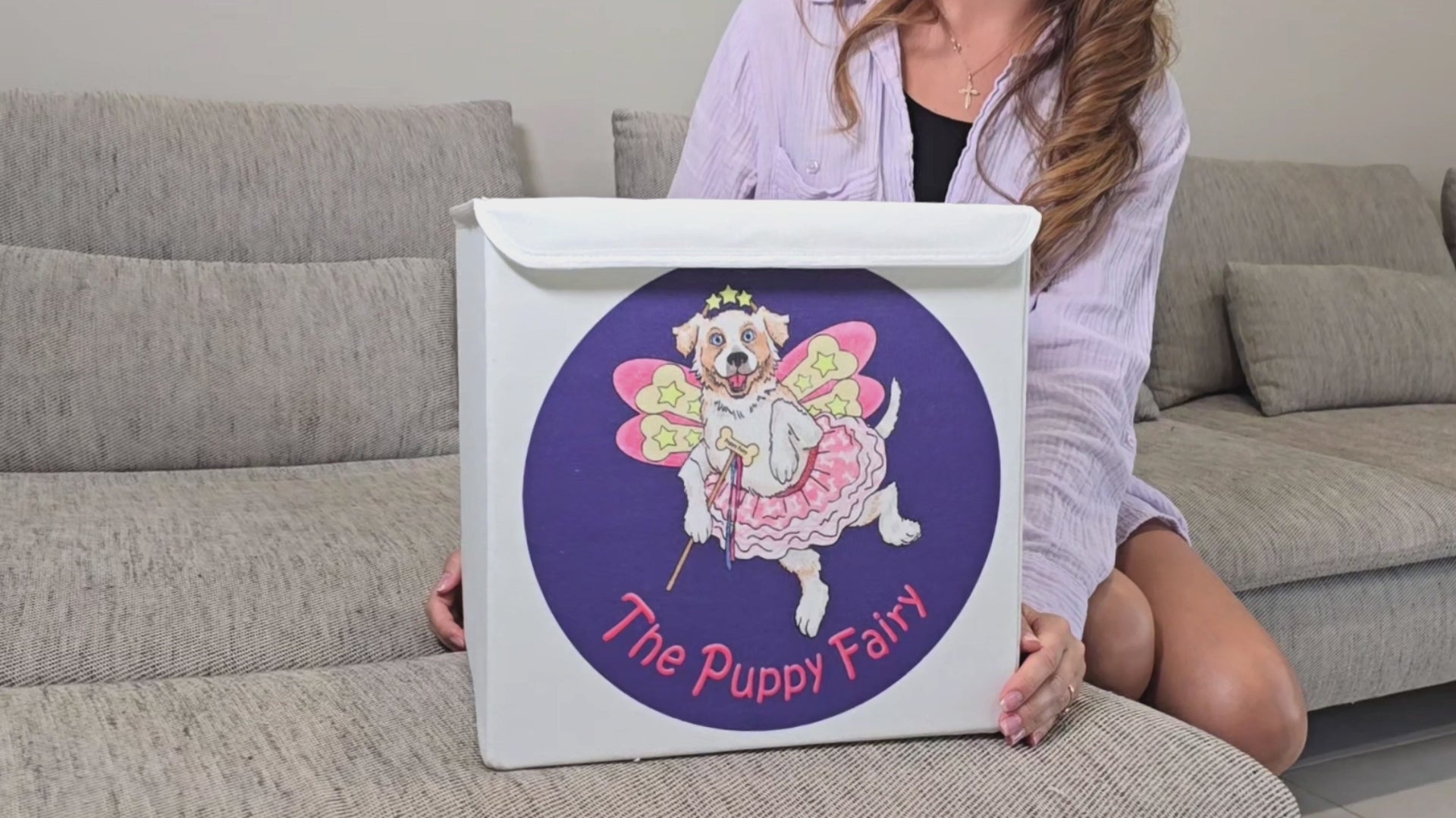 Place this box where The Puppy Fairy will easily find it. Every night she'll visit, leaving toys, bones, treats, and other puppy gifts in this box.